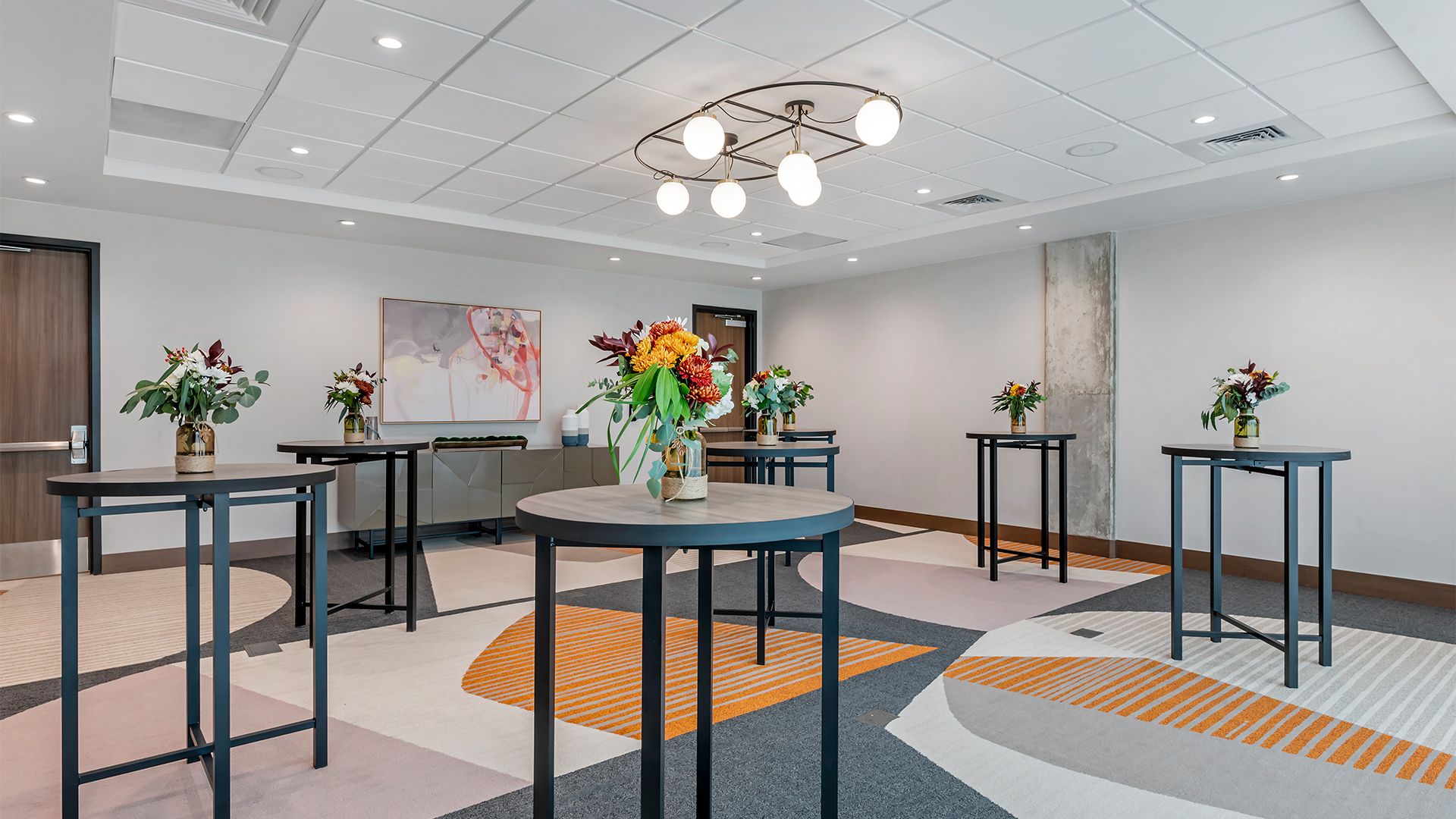 Located on the first floor, our multifunctional Jump Lobby is a colorful and eclectic backdrop for a welcome reception or gallery-style exhibit.